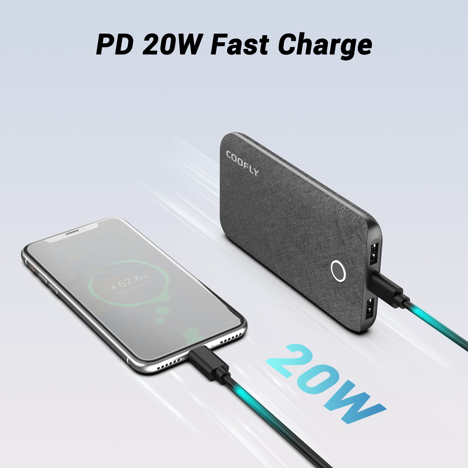 COOFLY P176D Type-C In&Out 10000mAh Power Bank, 20W Fast Charging